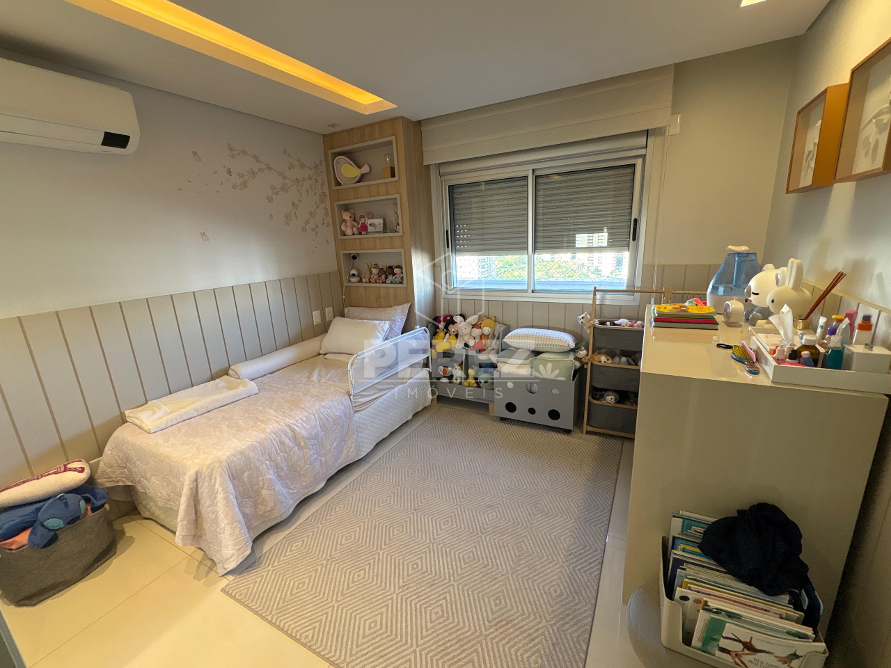 Apartamento localizado no Edifício Terrace Tower, em andar intermediário e posição nascente, proporcionando excelente ventilação e iluminação natural. O imóvel conta com projeto completo em marcenaria, aparelhos de ar-condicionado instalados, persianas automatizadas, forros em gesso e iluminação em LED, oferecendo conforto, sofisticação e funcionalidade.