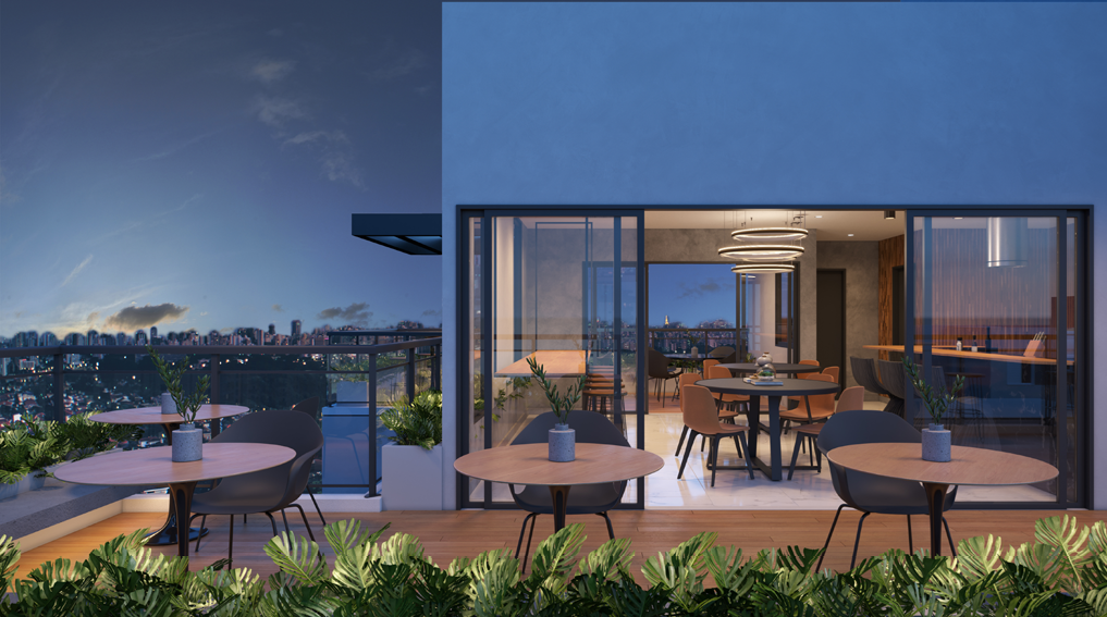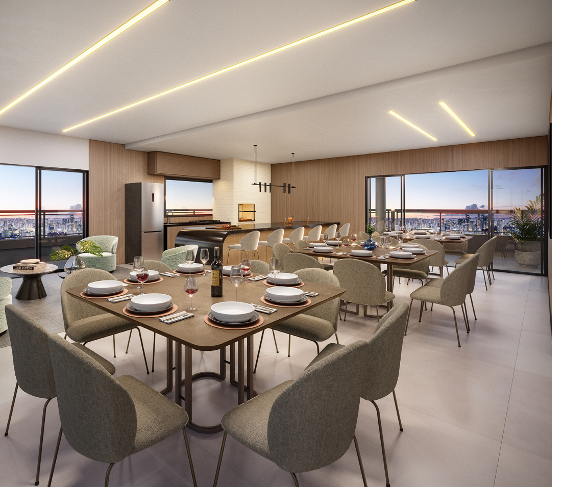 - Cobertura rooftop com espaço gourmet e vista 180°.