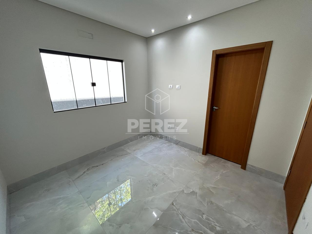 - Porta de entrada em madeira maciça com fechadura eletrônica.