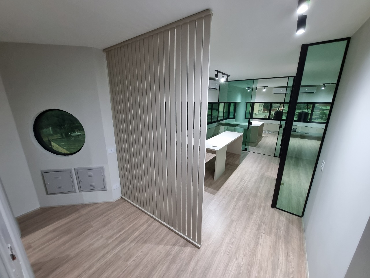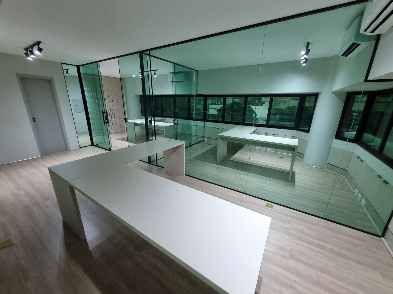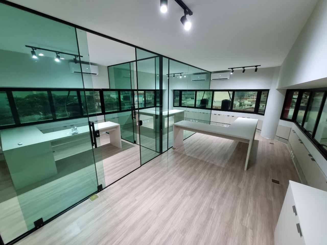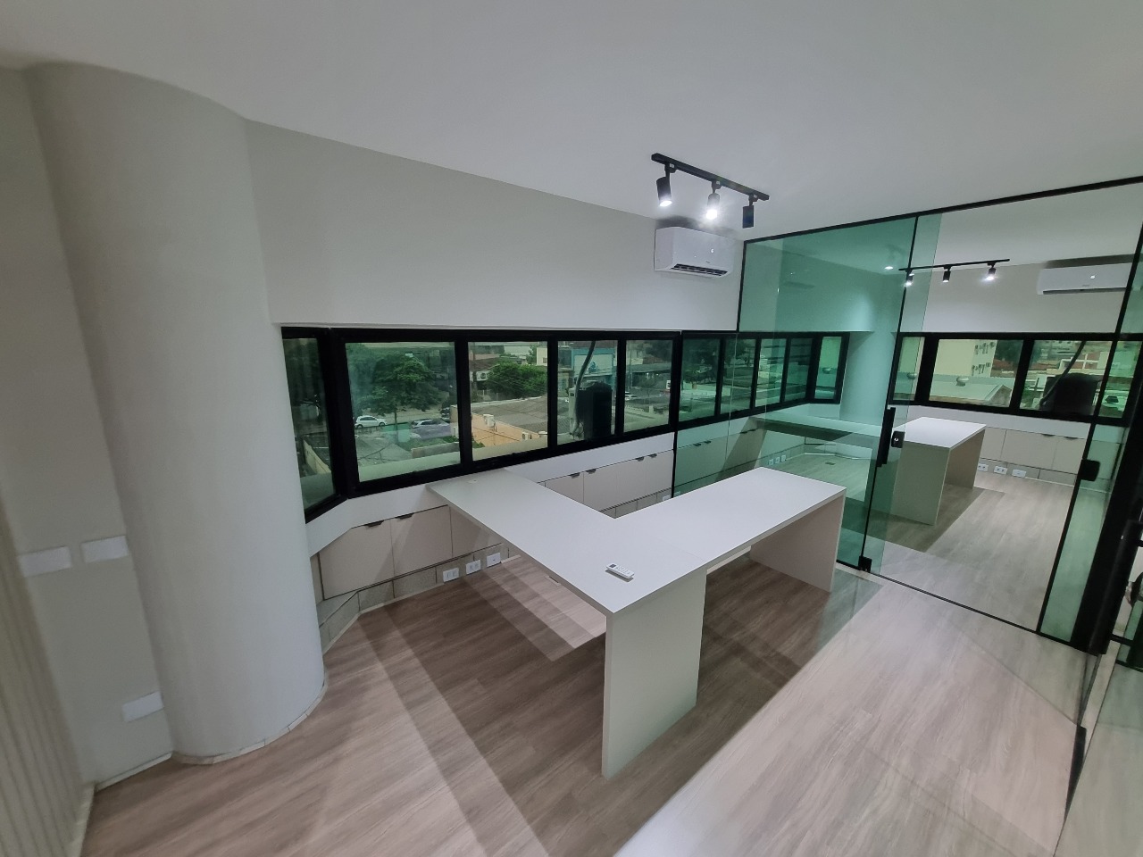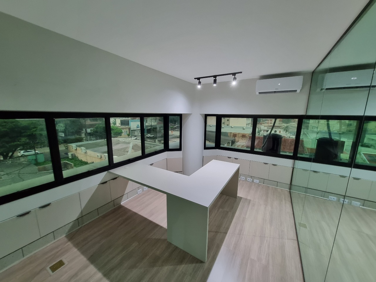 01 Recepção com armários embutidos e ar-condicionado – Acolhedora e funcional para atendimento ao público.