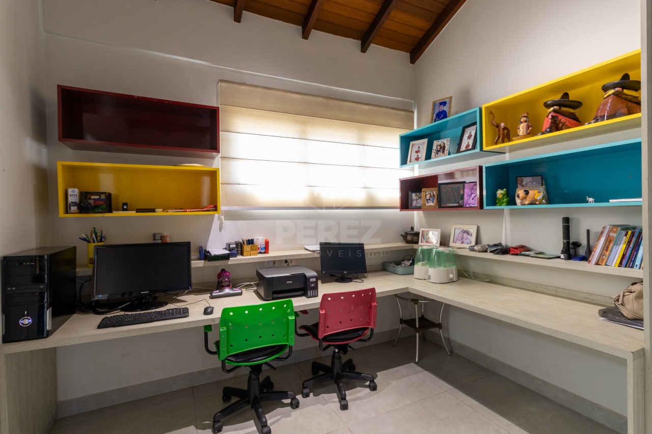 - A garagem foi transformada em um cômodo utilizado como escritório, equipado com armários planejados, aumentando ainda mais a funcionalidade do imóvel. Apesar de não possuir garagem, o condomínio comporta espaço para dois carros a frente do imóvel.