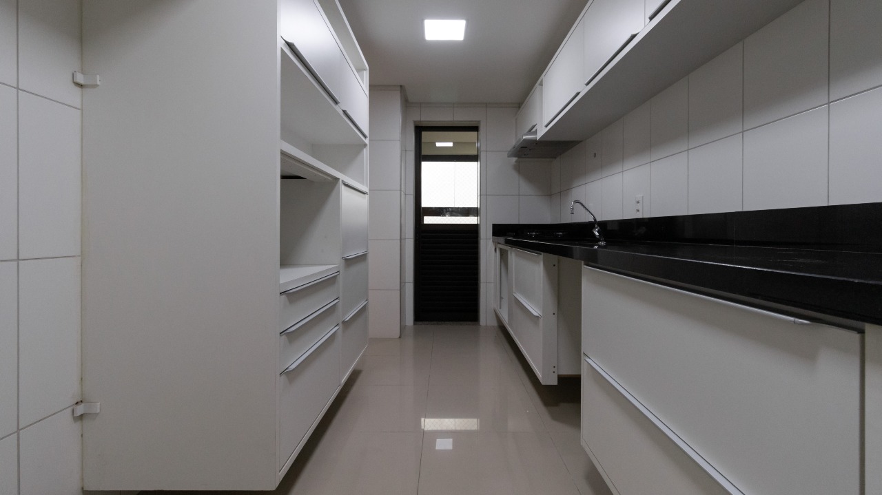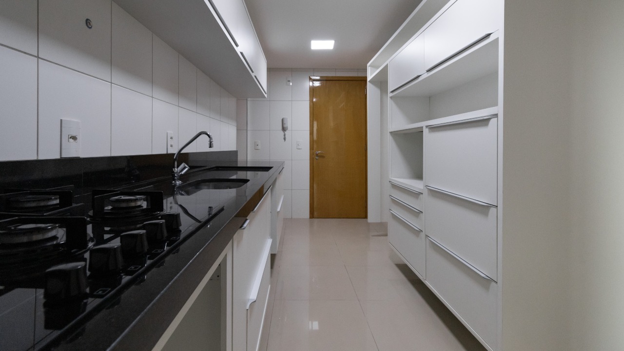 Cozinha planejada, equipada com armários embutidos (A/E) e cooktop, oferecendo praticidade no dia a dia;
