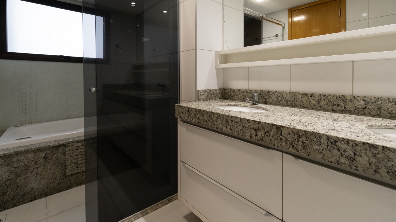 03 suítes climatizadas, todas com armários embutidos (A/E), sendo 01 suíte máster com hidromassagem para maior conforto;