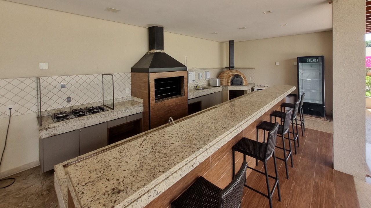 Sacada gourmet espaçosa, equipada com armários embutidos (A/E), churrasqueira e pia, perfeita para receber amigos e familiares;