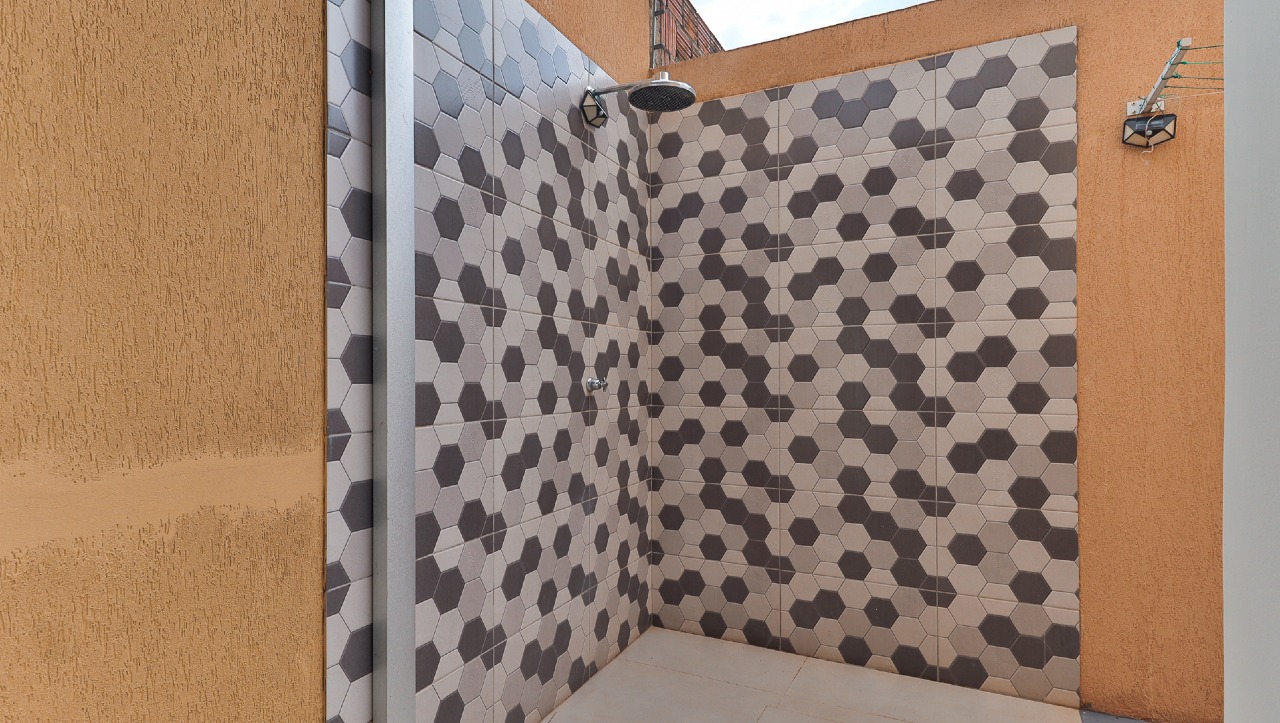 Banheiro social funcional que atende as necessidades do dia a dia;