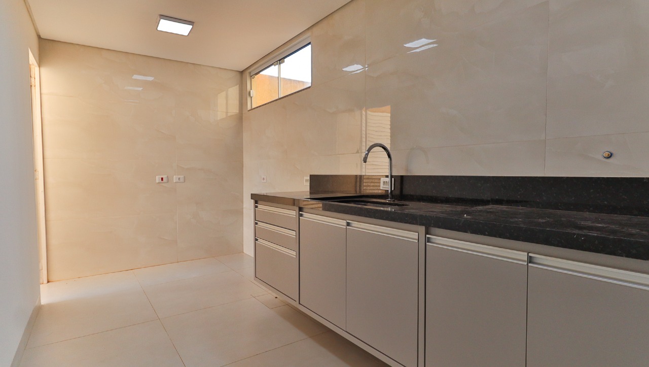 Cozinha equipada com armários embutidos (A/E) e bancada de apoio, unindo funcionalidade e organização;