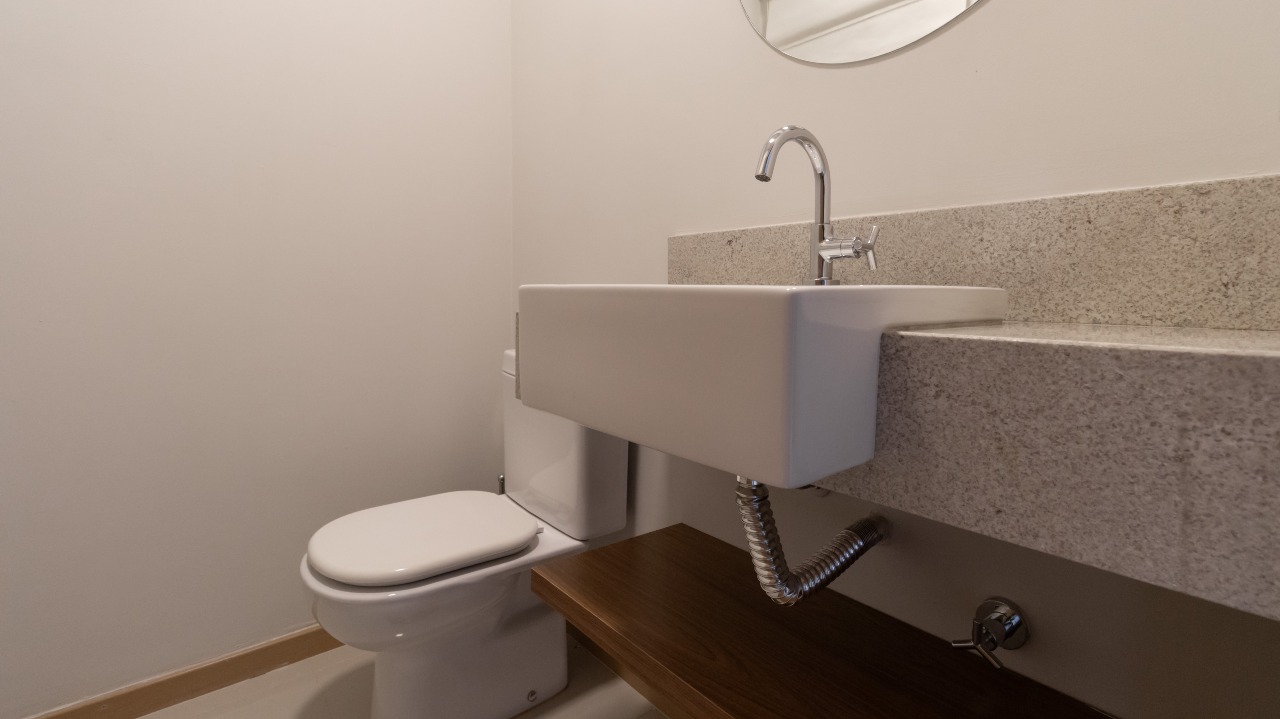 Lavabo bem posicionado, garantindo comodidade às visitas;