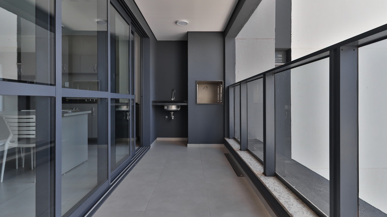 Sacada gourmet, com pia de apoio e excelente vista, perfeita para momentos de lazer;