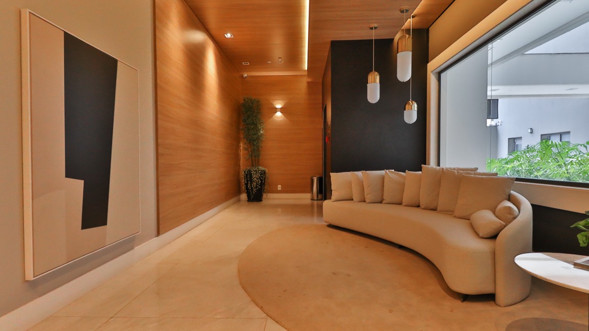 Sala de estar ampla, com excelente iluminação natural, proporcionando conforto e bem-estar;