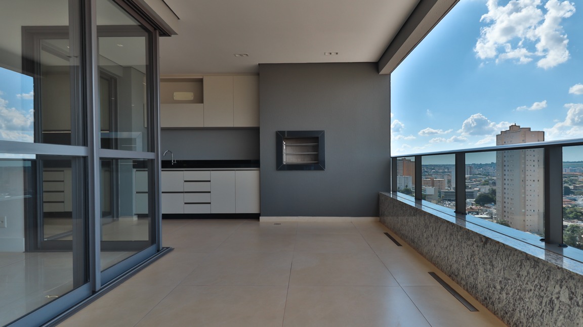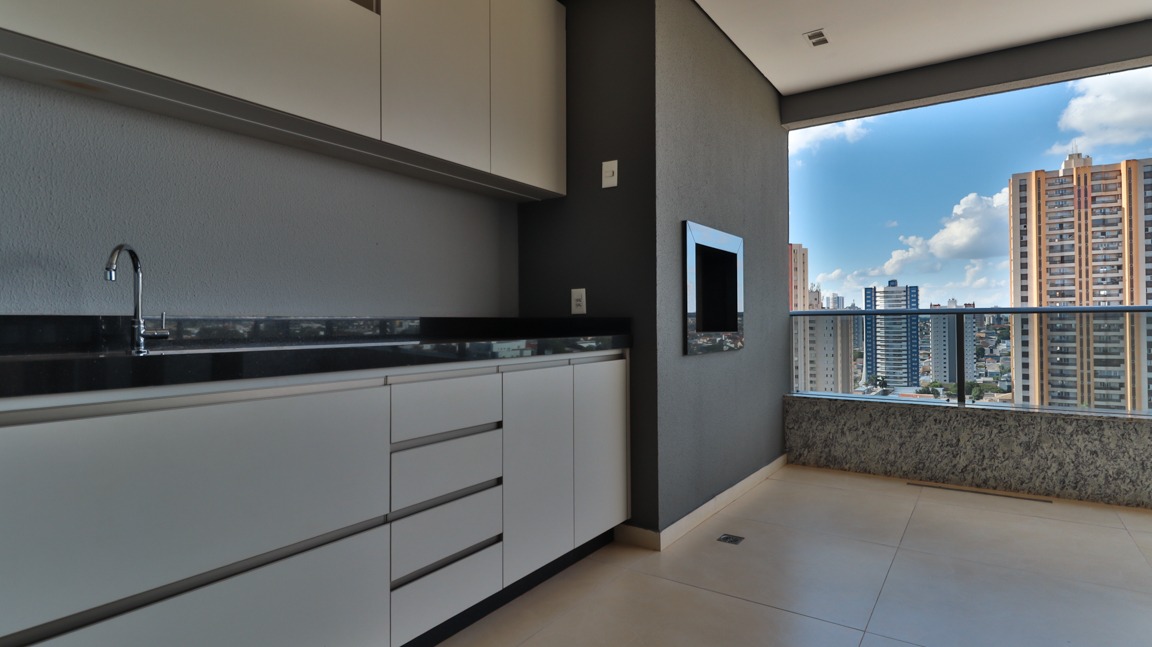 Varanda gourmet ampla, com bancada, pia e churrasqueira, integrada às salas e à cozinha, ideal para receber amigos e família;