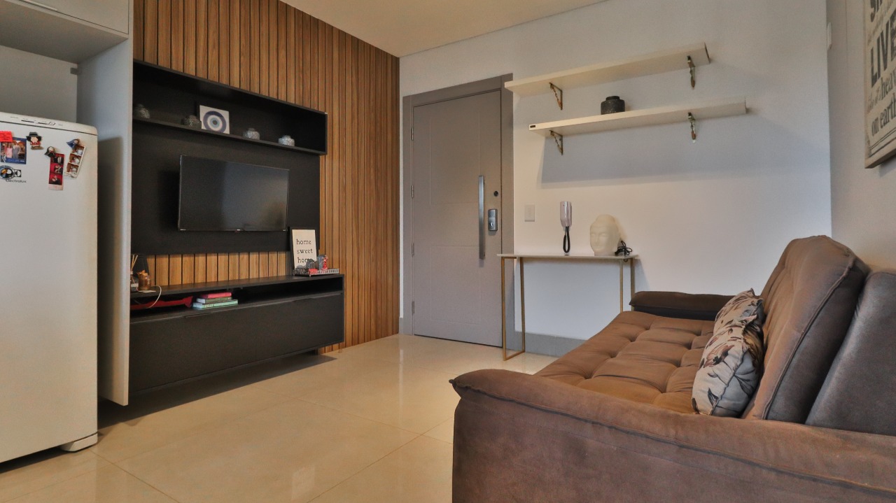 Sala de estar climatizada, proporcionando conforto térmico e um ambiente agradável para o dia a dia e momentos de convivência;