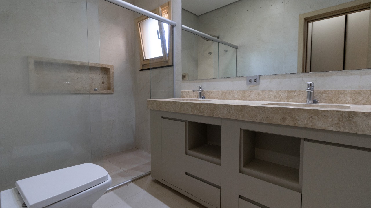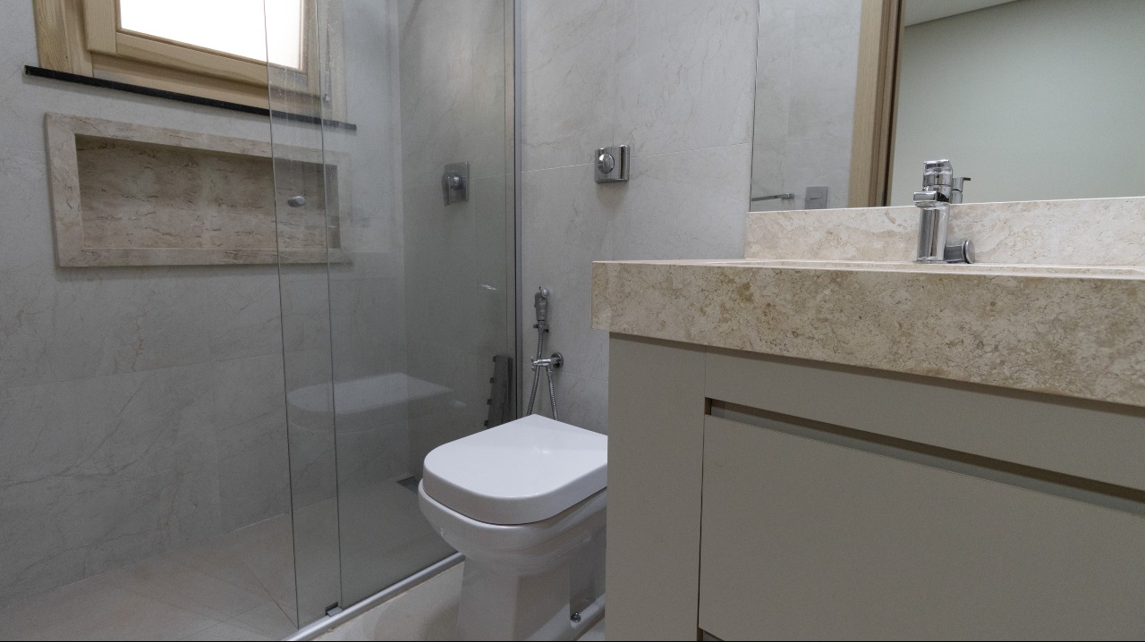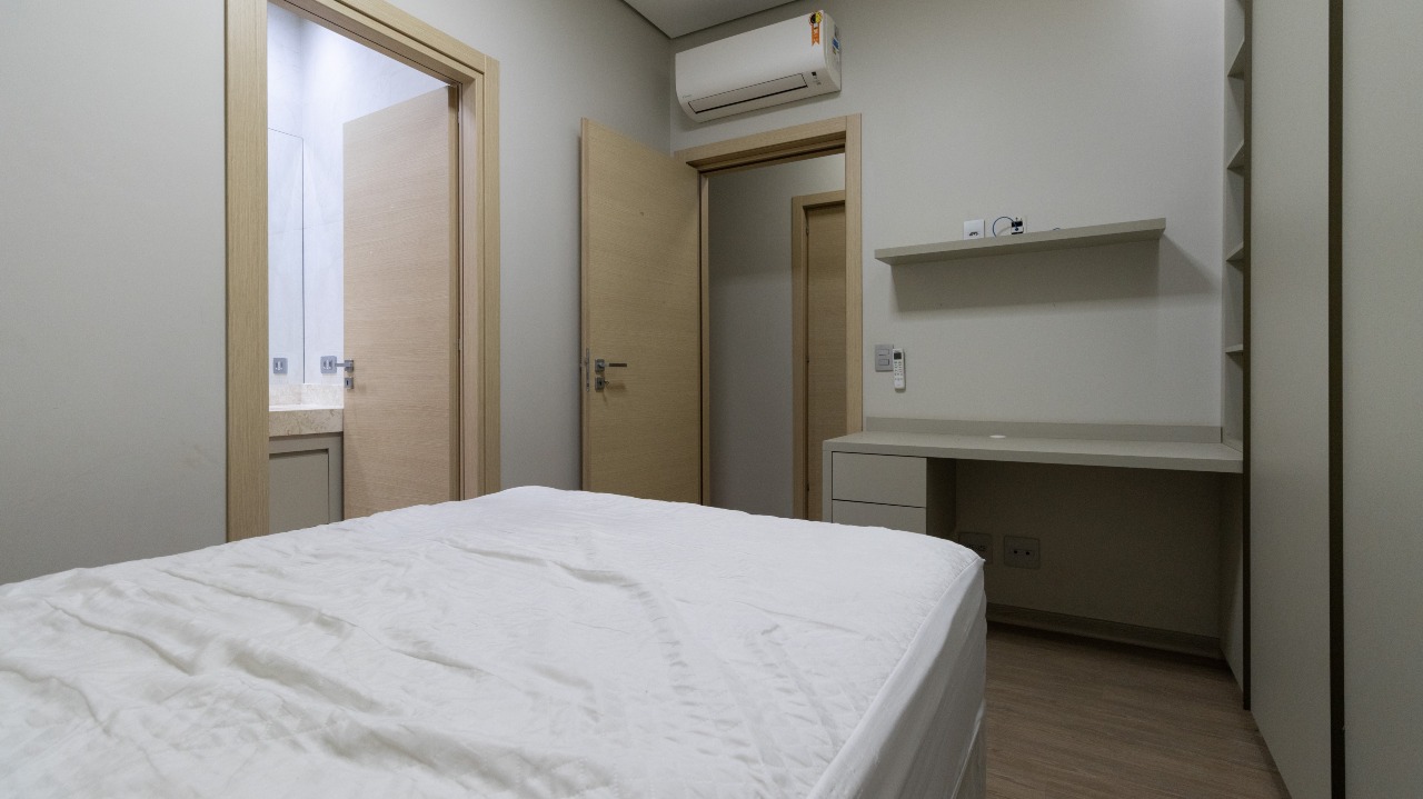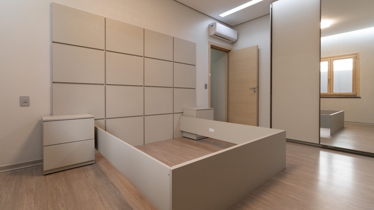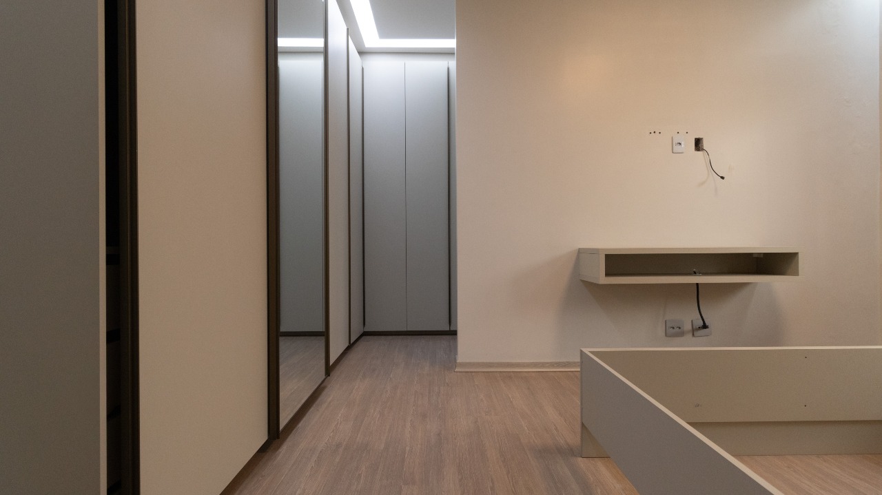 Suíte master climatizada, equipada com armários embutidos (A/E), garantindo conforto, organização e privacidade;