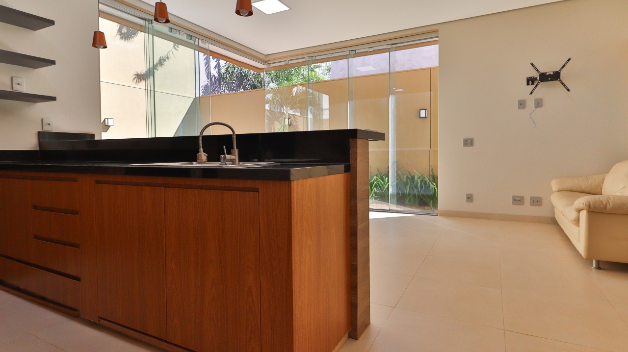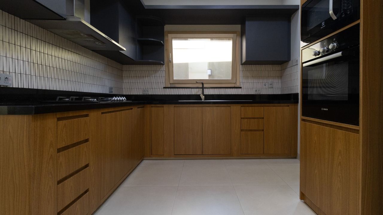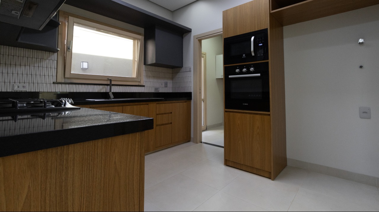 Cozinha totalmente equipada com armários embutidos (A/E), cooktop, depurador de ar, micro-ondas e forno, oferecendo praticidade e funcionalidade no dia a dia;