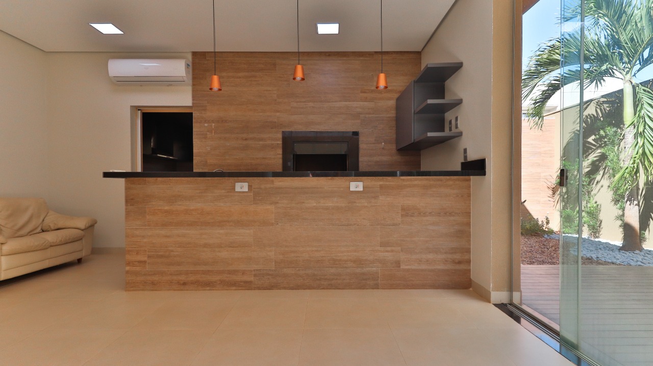 Espaço gourmet completo com churrasqueira, pia e bancada de apoio, ideal para momentos de lazer e confraternização;