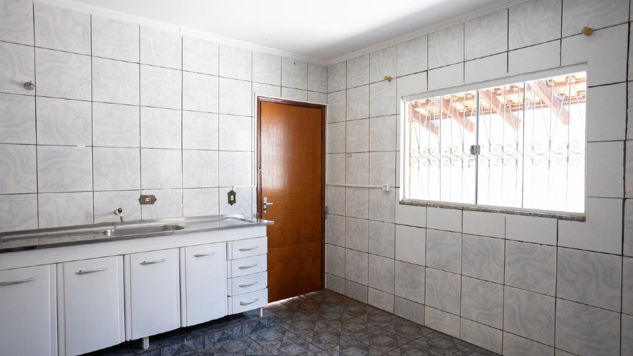 Cozinha ampla, equipada com armário de apoio, prática para o dia a dia;
