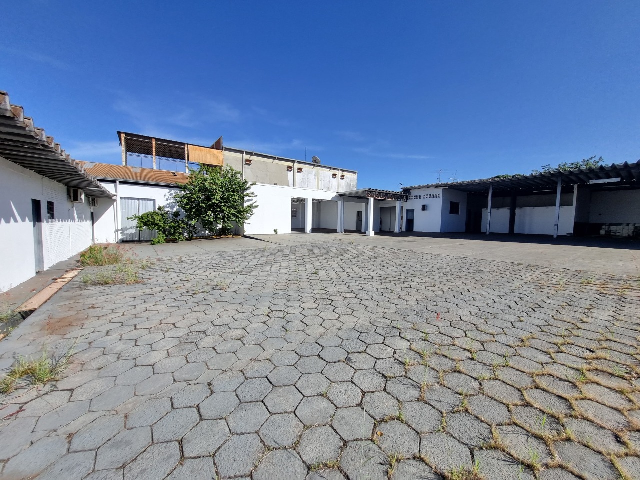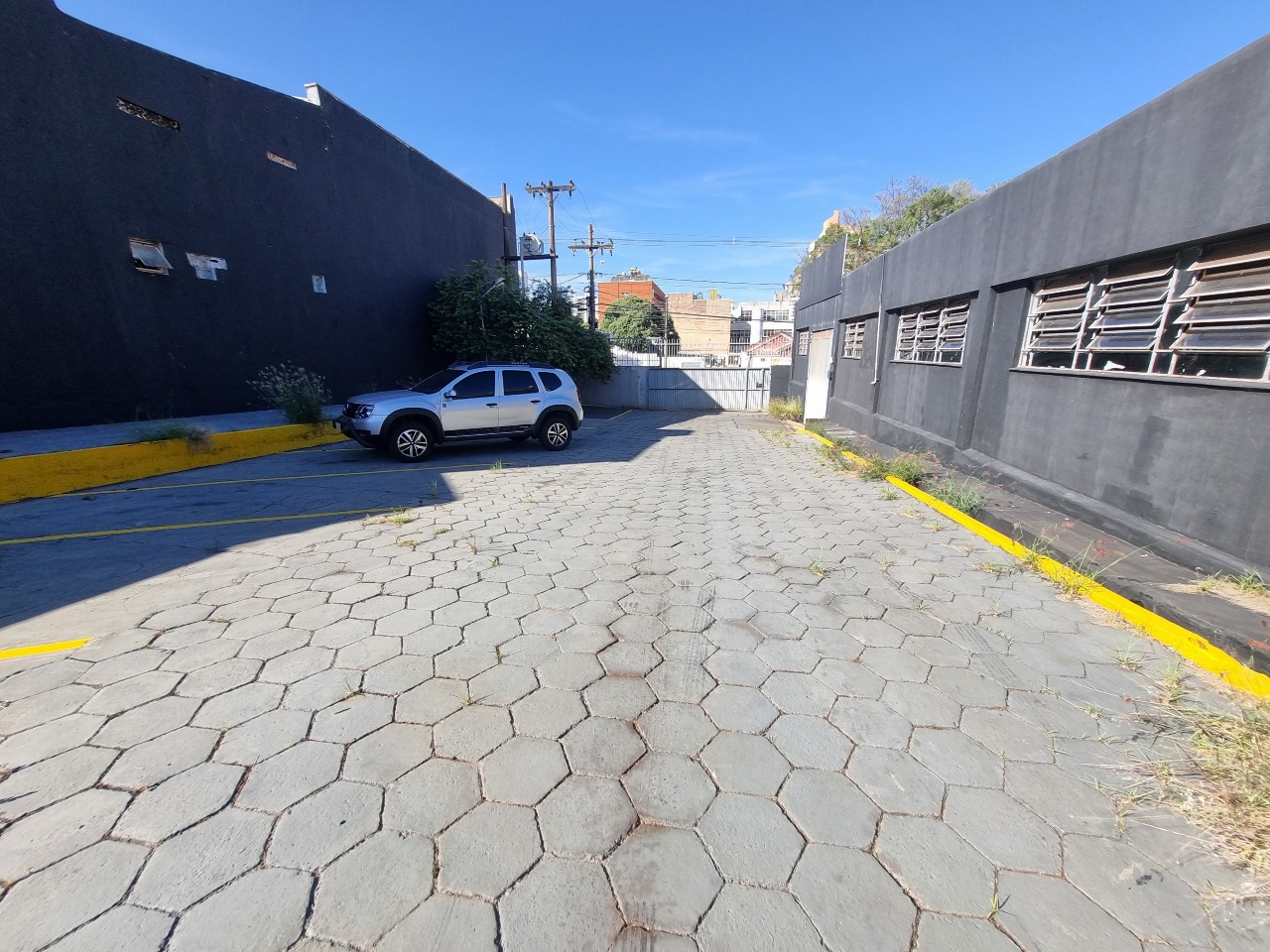 Pátio amplo para estacionamento, atendendo funcionários, clientes e logística de carga e descarga;