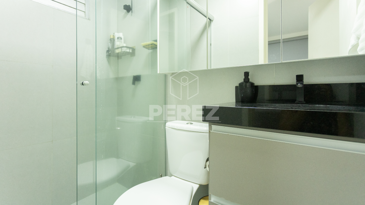 01 Banheiro social com armários planejados – De apoio aos dormitórios.