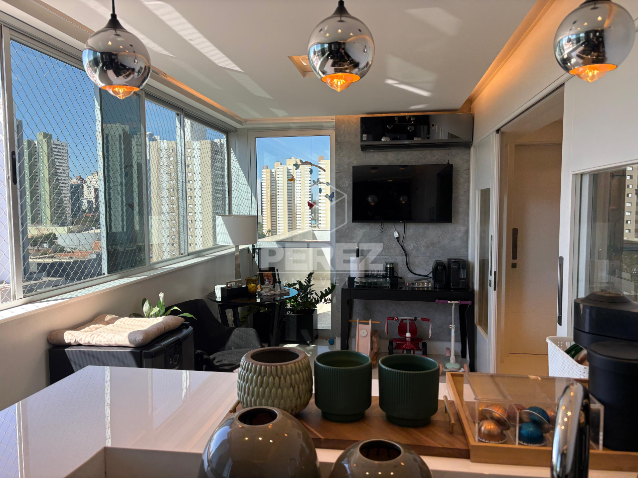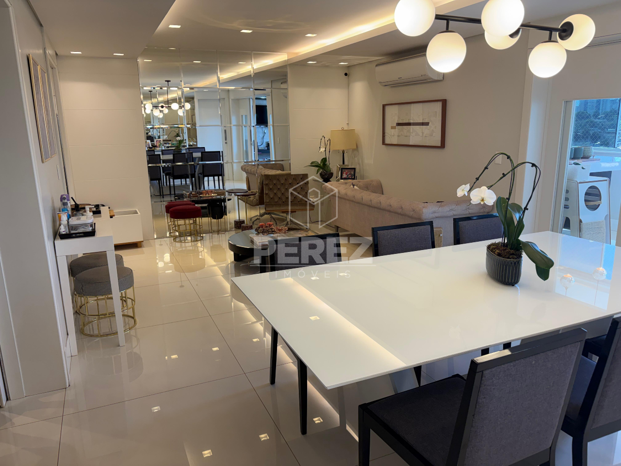 Apartamento localizado no Edifício Terrace Tower, em andar intermediário e posição nascente, proporcionando excelente ventilação e iluminação natural. O imóvel conta com projeto completo em marcenaria, aparelhos de ar-condicionado instalados, persianas automatizadas, forros em gesso e iluminação em LED, oferecendo conforto, sofisticação e funcionalidade.