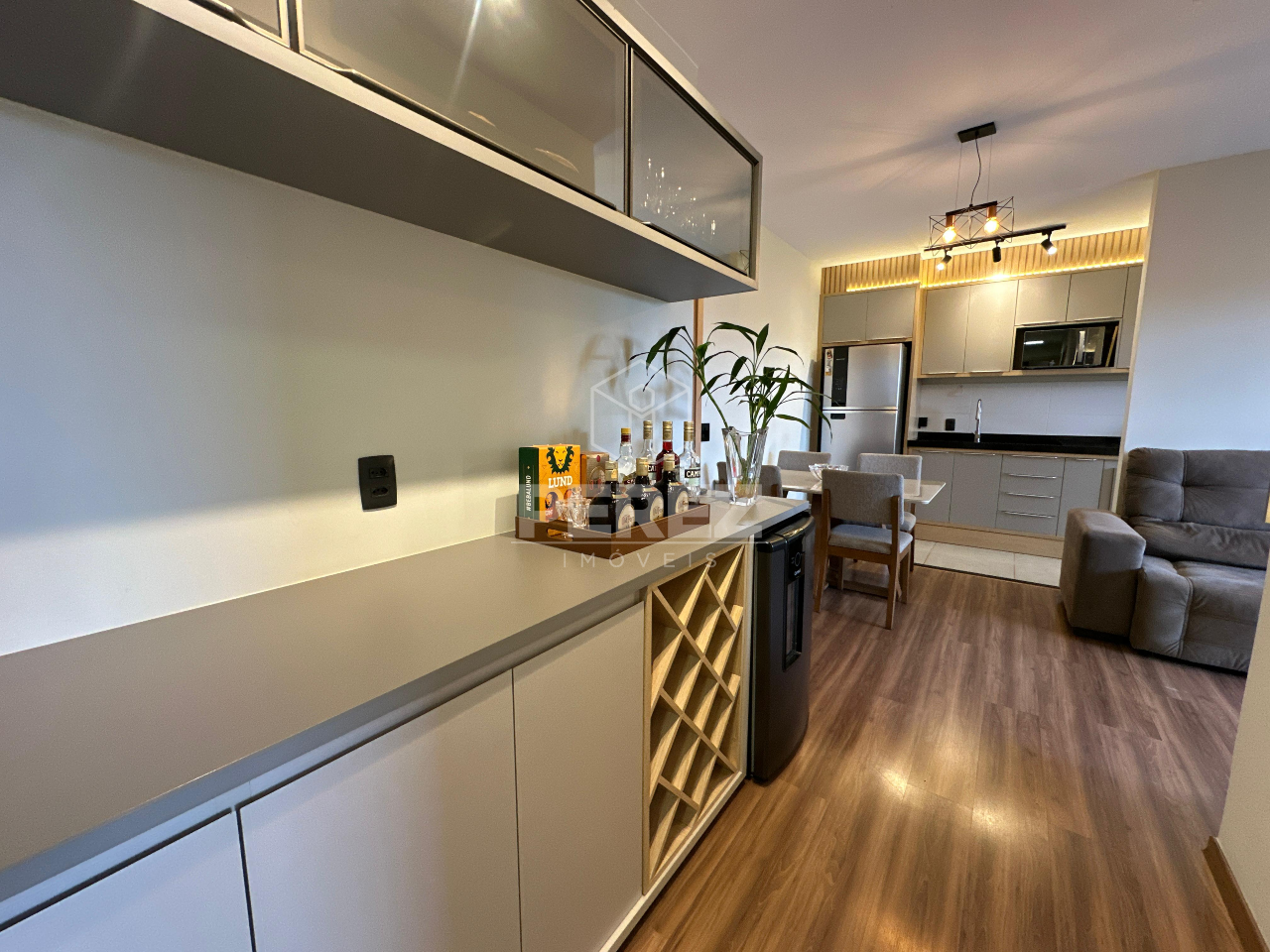 01 Sala de jantar com armários planejados – Integrada e bem distribuída.