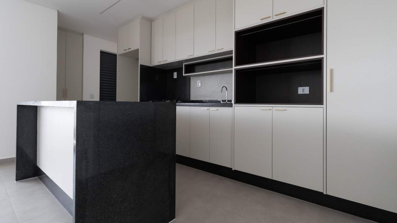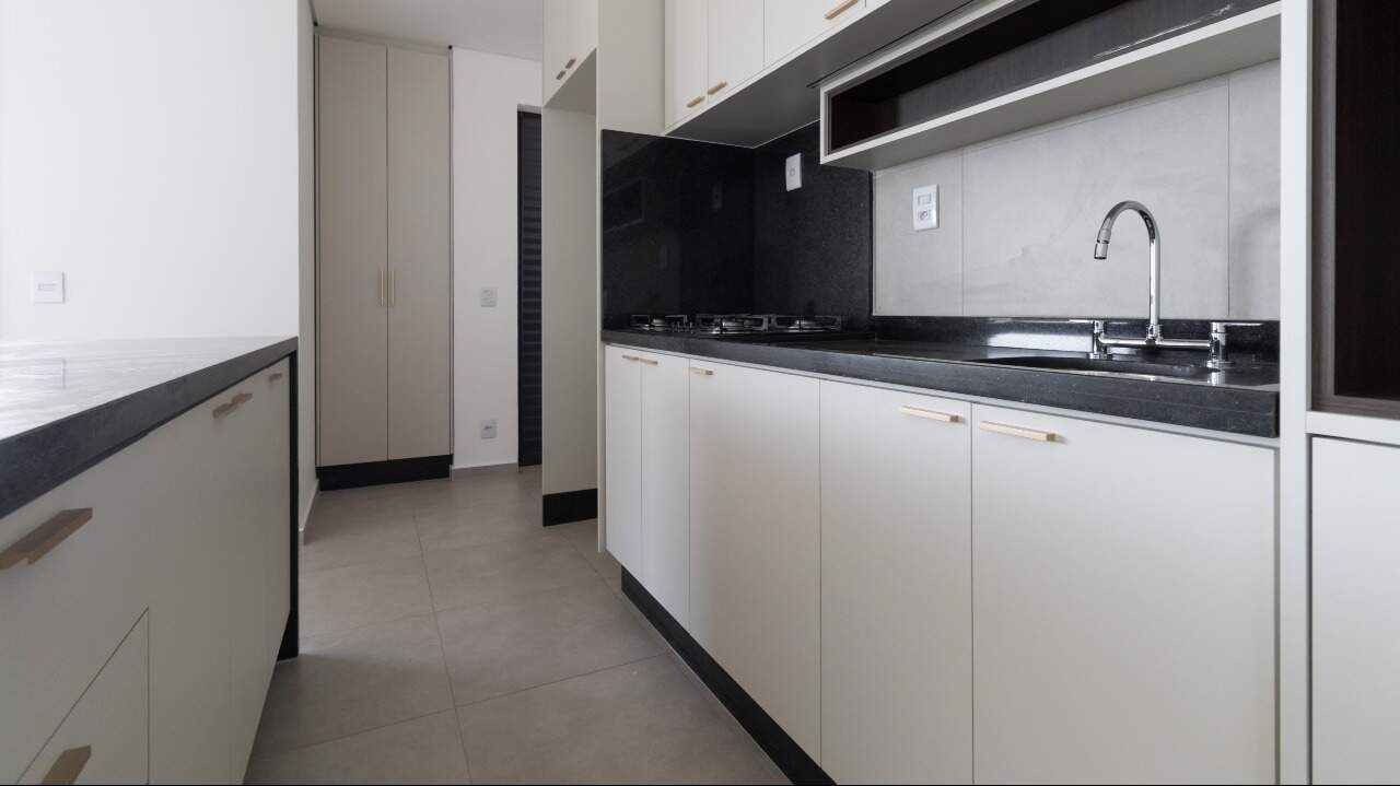 Cozinha com armários planejados (A/E) e fogão cooktop, funcional e bem distribuída, com excelente aproveitamento de espaço e praticidade na rotina;