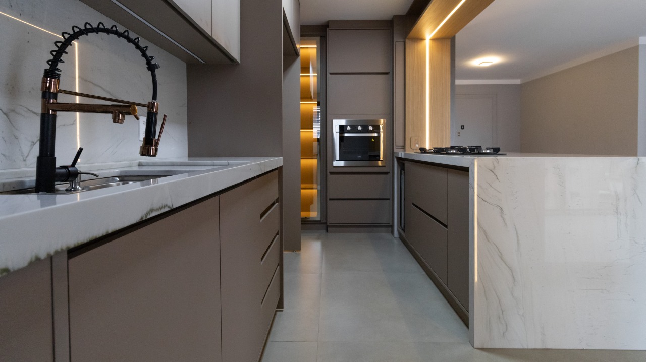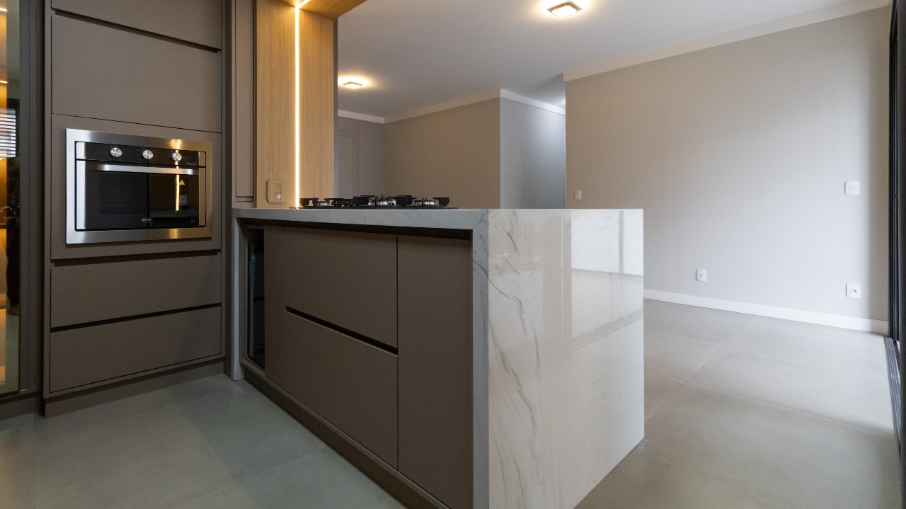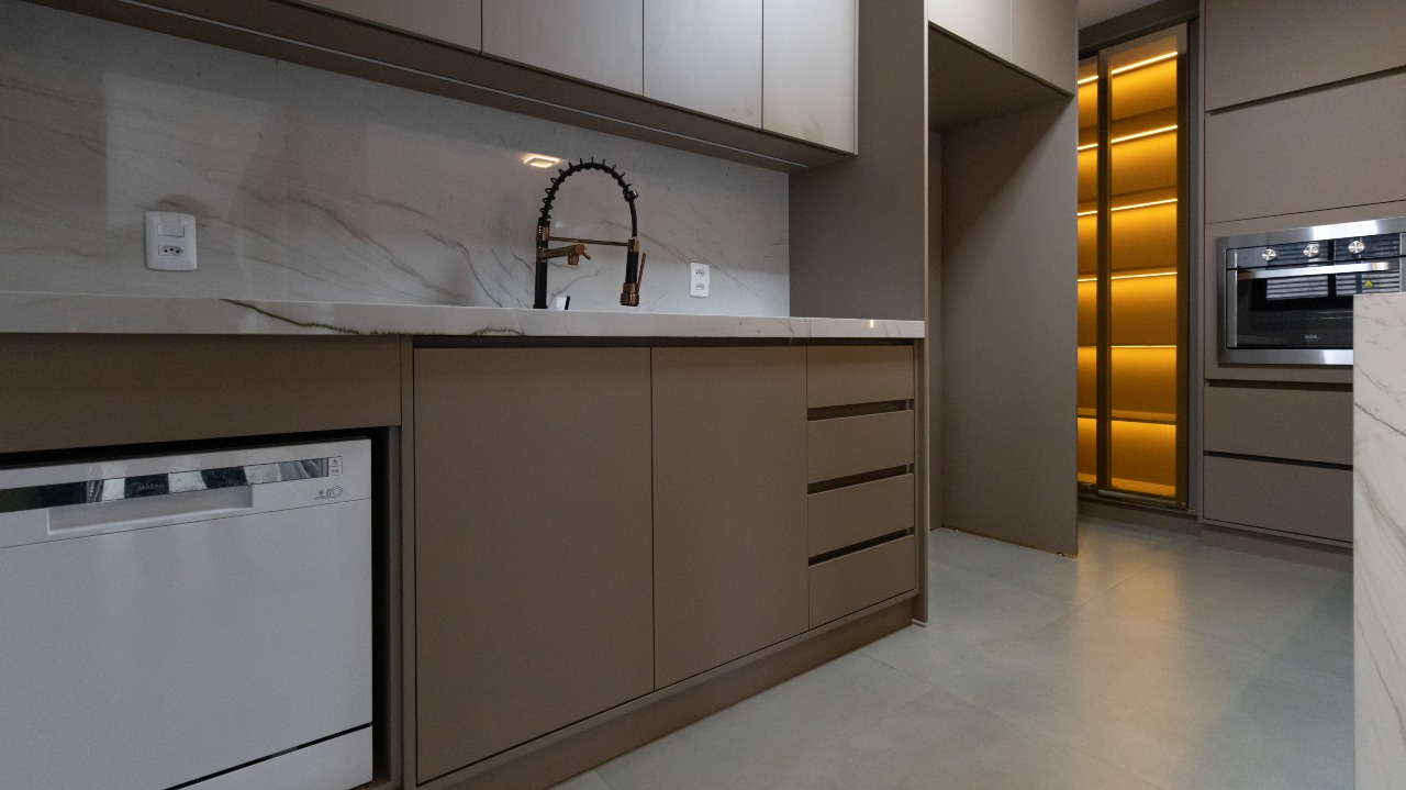 Cozinha completa, funcional e equipada com armários embutidos (A/E), oferecendo praticidade no dia a dia;