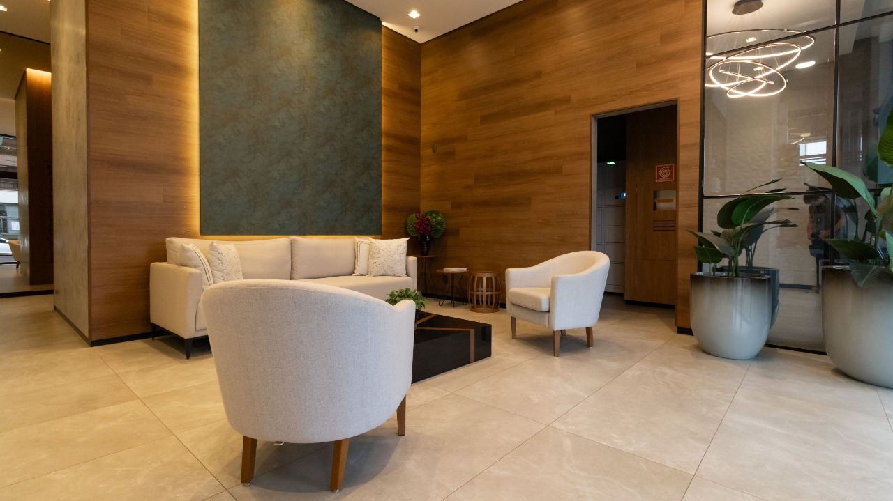 Sala de estar com excelente iluminação natural, proporcionando conforto e amplitude ao ambiente;