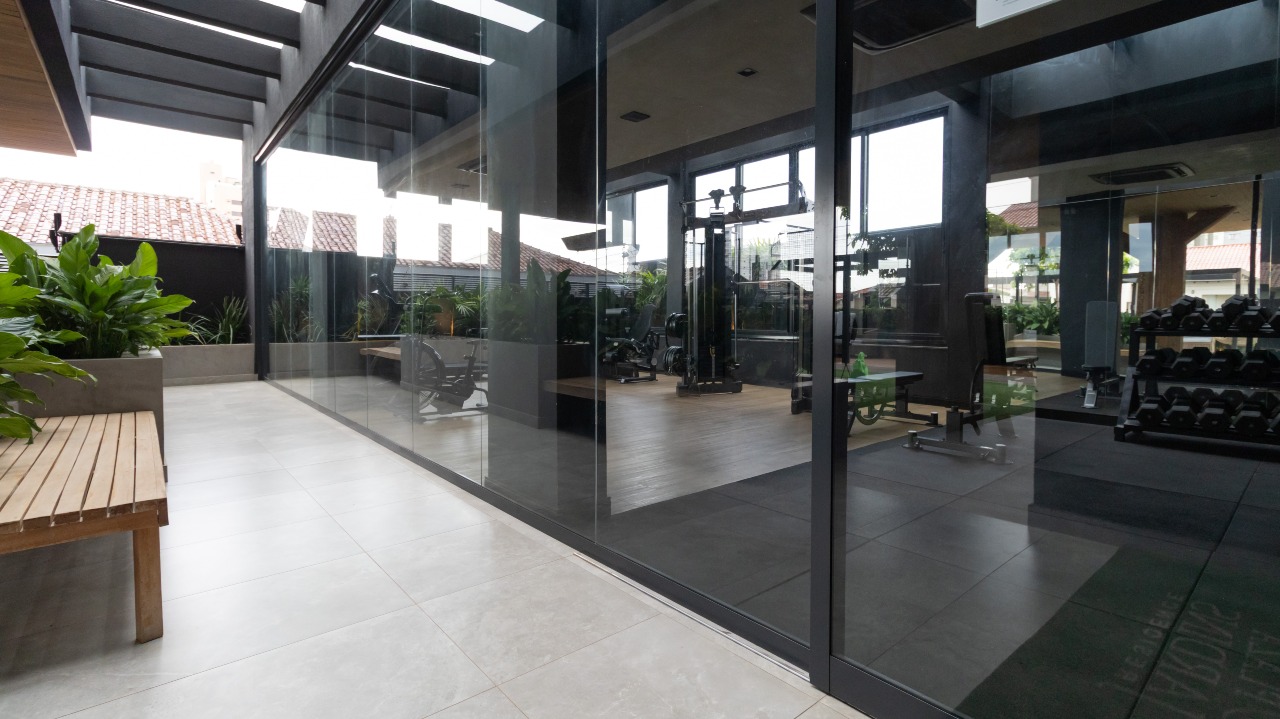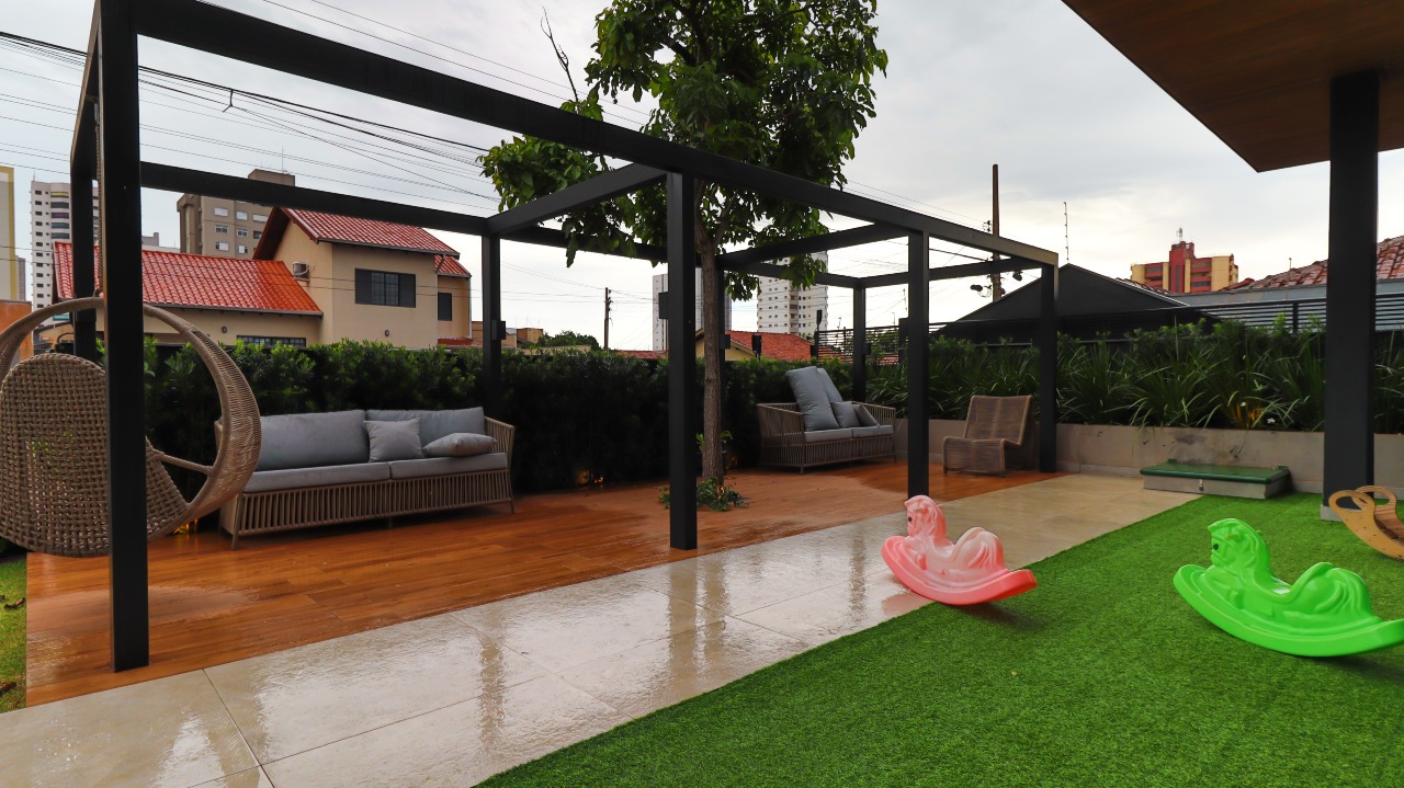 Sacada gourmet equipada com churrasqueira, perfeita para momentos de lazer e confraternização;