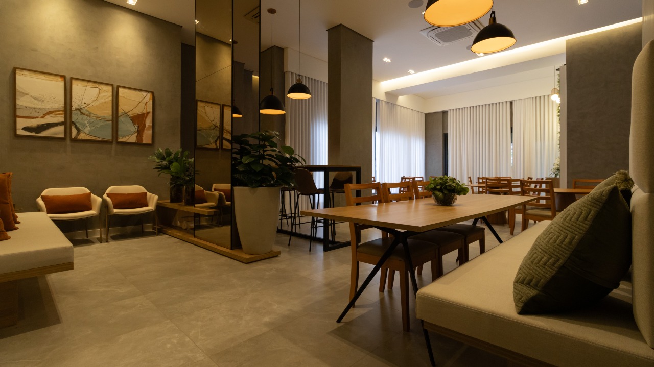 Sala de jantar integrada, favorecendo a convivência e a fluidez entre os espaços;