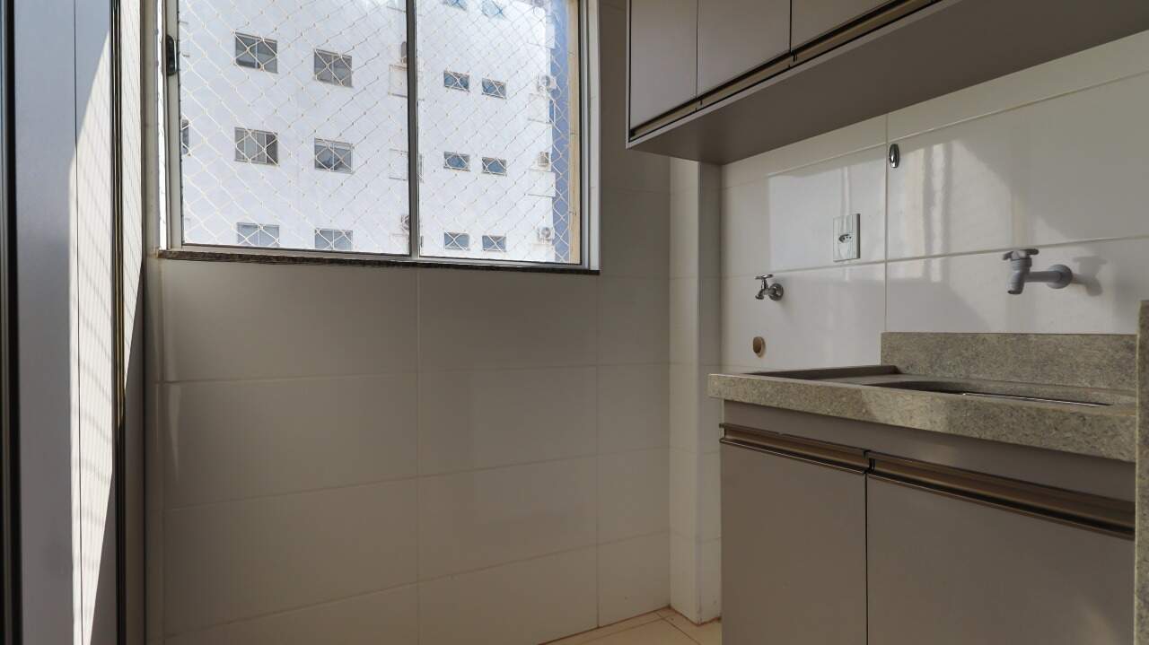 Área de serviço funcional, equipada com armários embutidos (A/E), garantindo praticidade e aproveitamento do espaço;