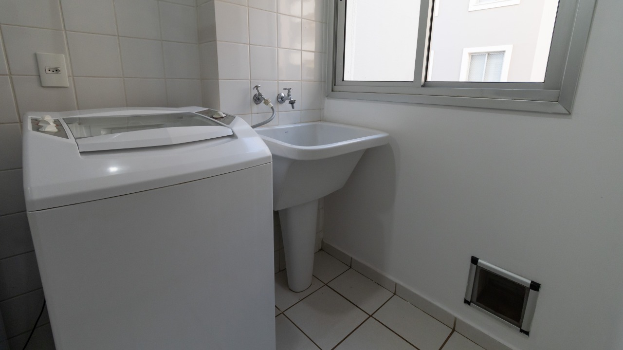 Área de serviço equipada com máquina de lavar, oferecendo praticidade e otimização das tarefas do dia a dia;