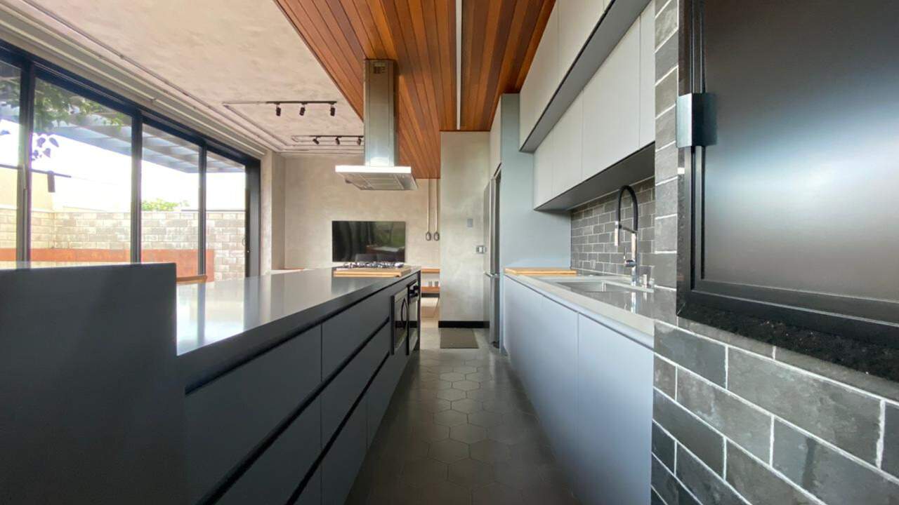 Cozinha equipada com armários embutidos (A/E), coifa, cooktop e churrasqueira, ideal para o dia a dia e momentos de confraternização;