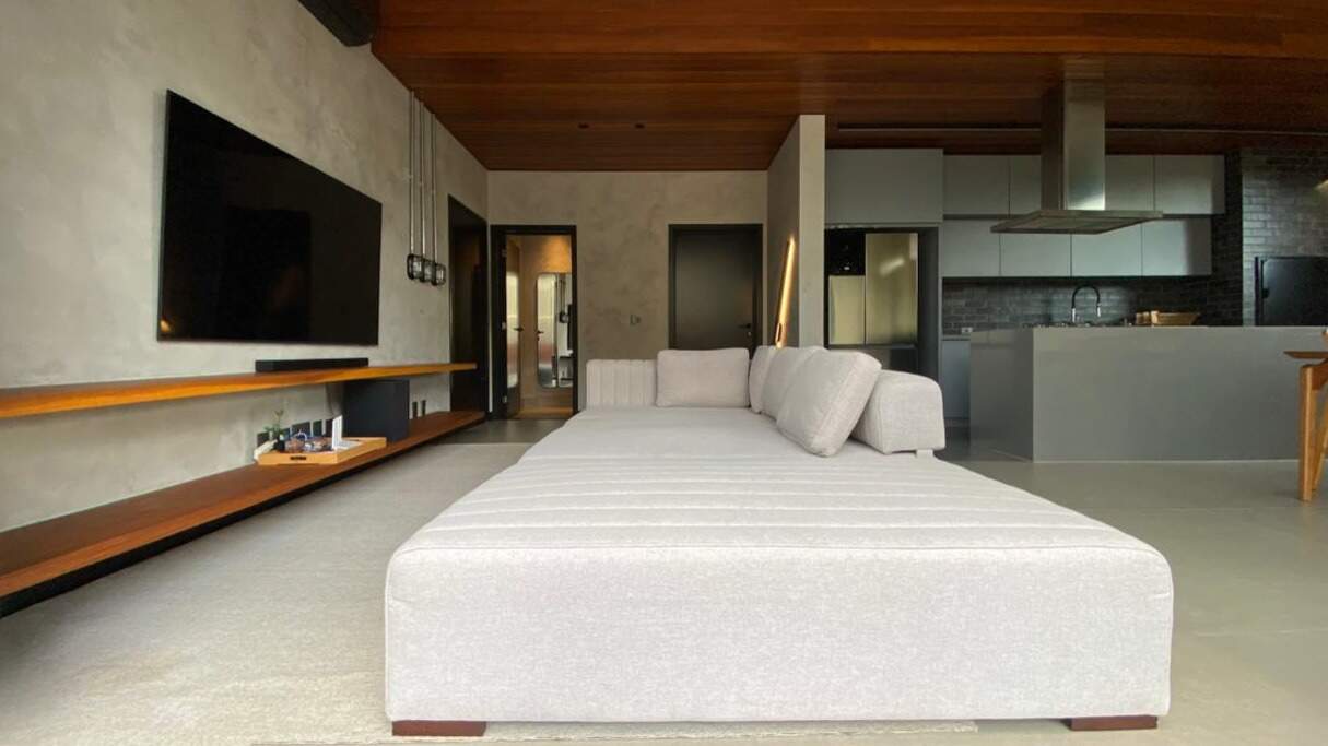 Sala no piso superior com excelente versatilidade, podendo ser utilizada como sala de TV, cinema privativo ou ainda como dormitório extra, conforme a necessidade da família;