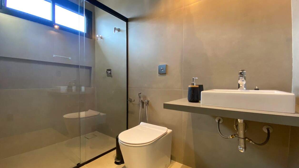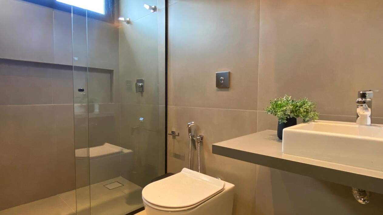 Suíte versátil no térreo, ideal tanto para uso como dormitório quanto para escritório, proporcionando praticidade e flexibilidade no dia a dia;