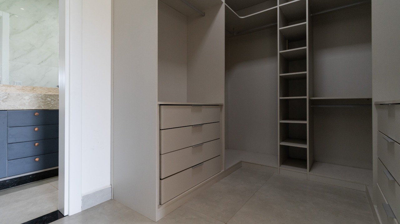 Suíte aconchegante, climatizada, com closet bem distribuído e sacada, unindo conforto e privacidade;