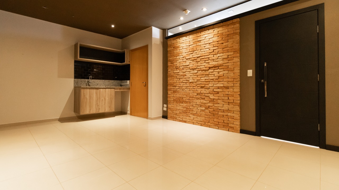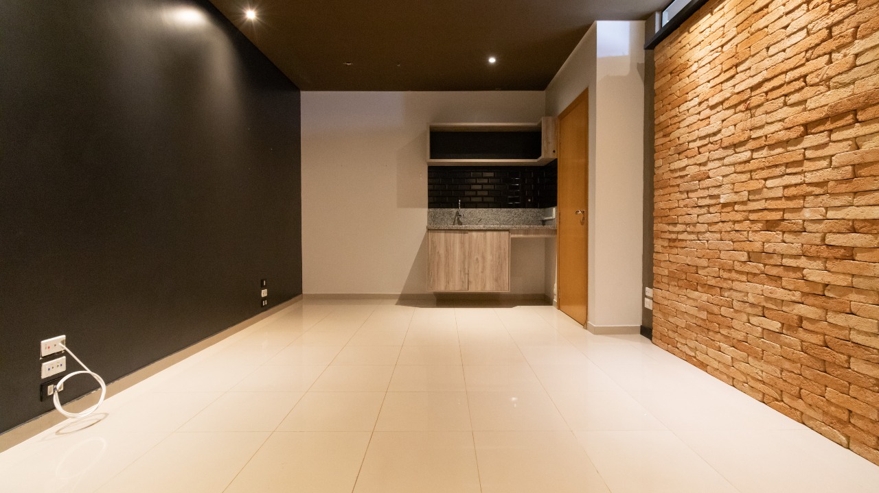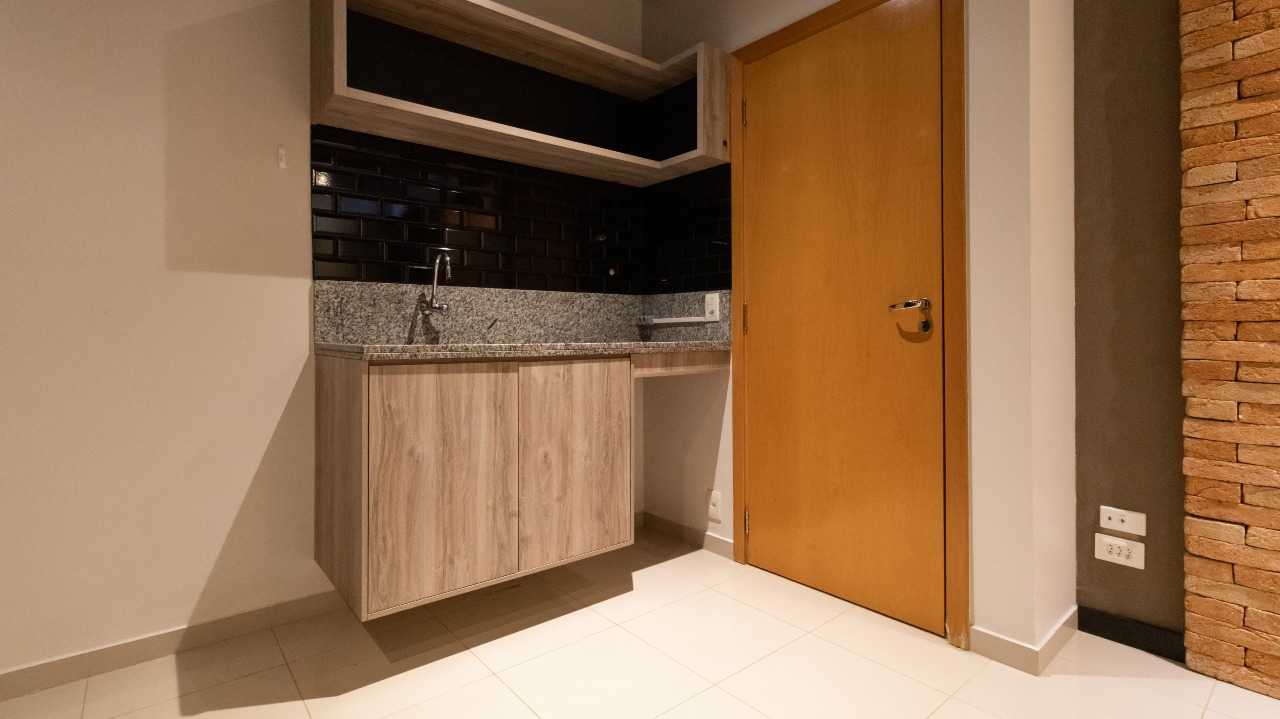 Copa com armários embutidos (A/E), garantindo praticidade e organização para apoio operacional;
