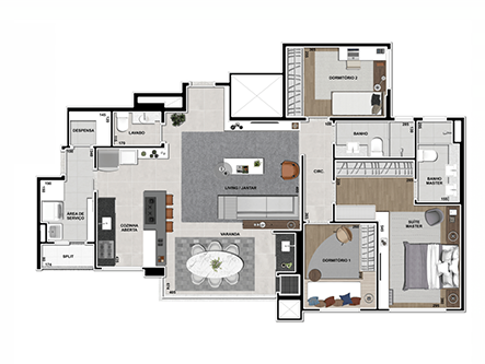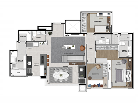 1 suíte com aproveitamento inteligente de espaços