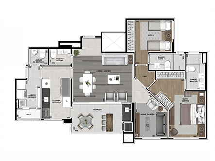 Apartamentos com 118 m² de área privativa